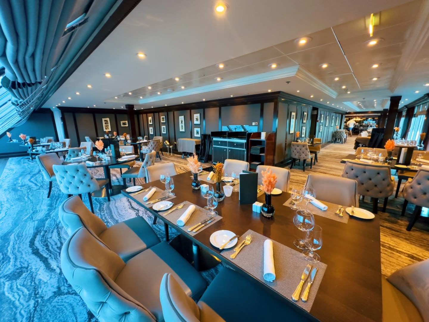 By day, The Den is a cozy, inviting space perfect for planning your next adventure—home to the Cruise Again desk and photo gallery, and filled with destination inspiration. By night, it transforms into a lively piano bar with craft cocktails, a talented live pianist, and a warm, social atmosphere. Whether you're mapping out future travels or enjoying the music with a nightcap in hand, The Den is where stories begin, and where many guests return night after night.